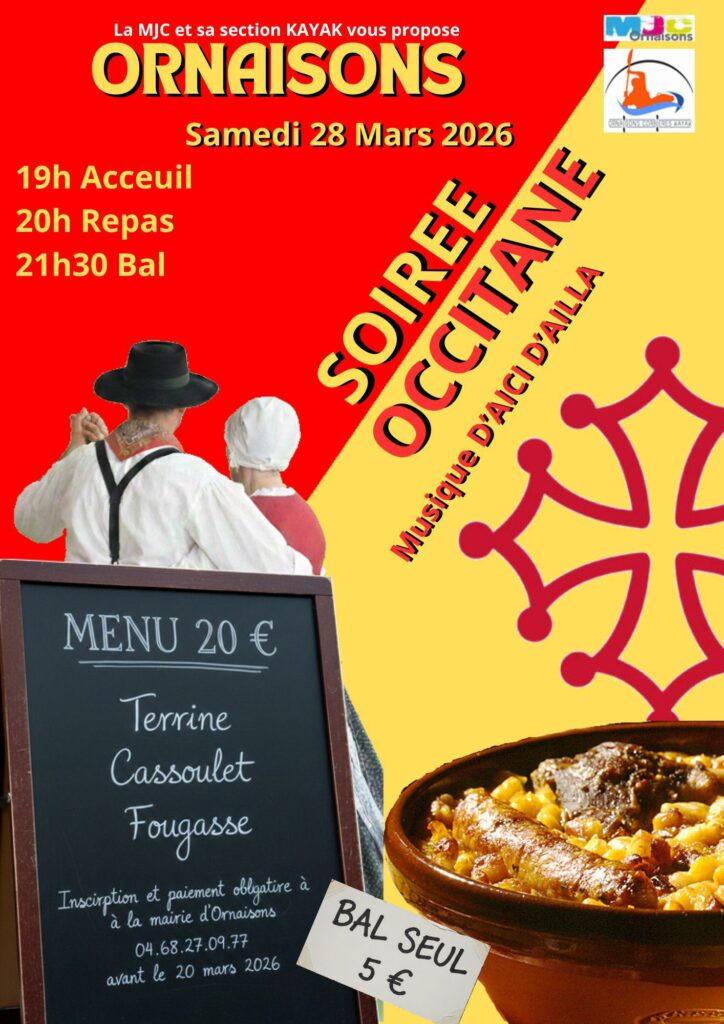 | 28/03/2026 | Soirée | Ornaisons | Soirée Occitane |