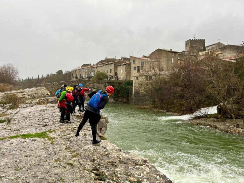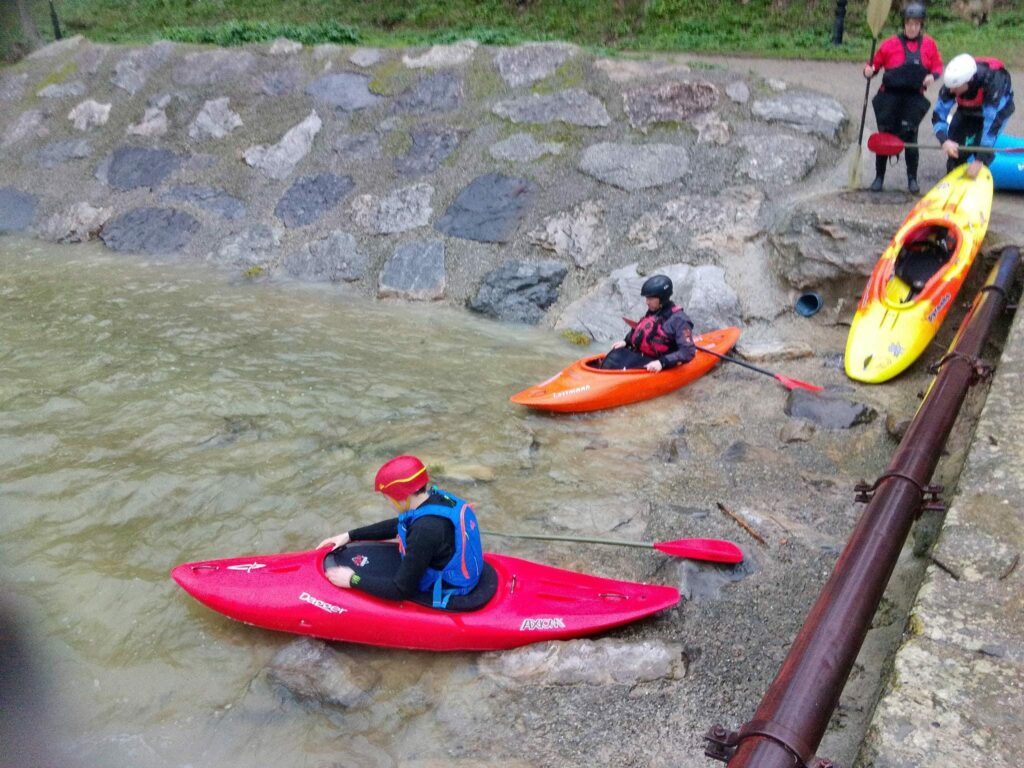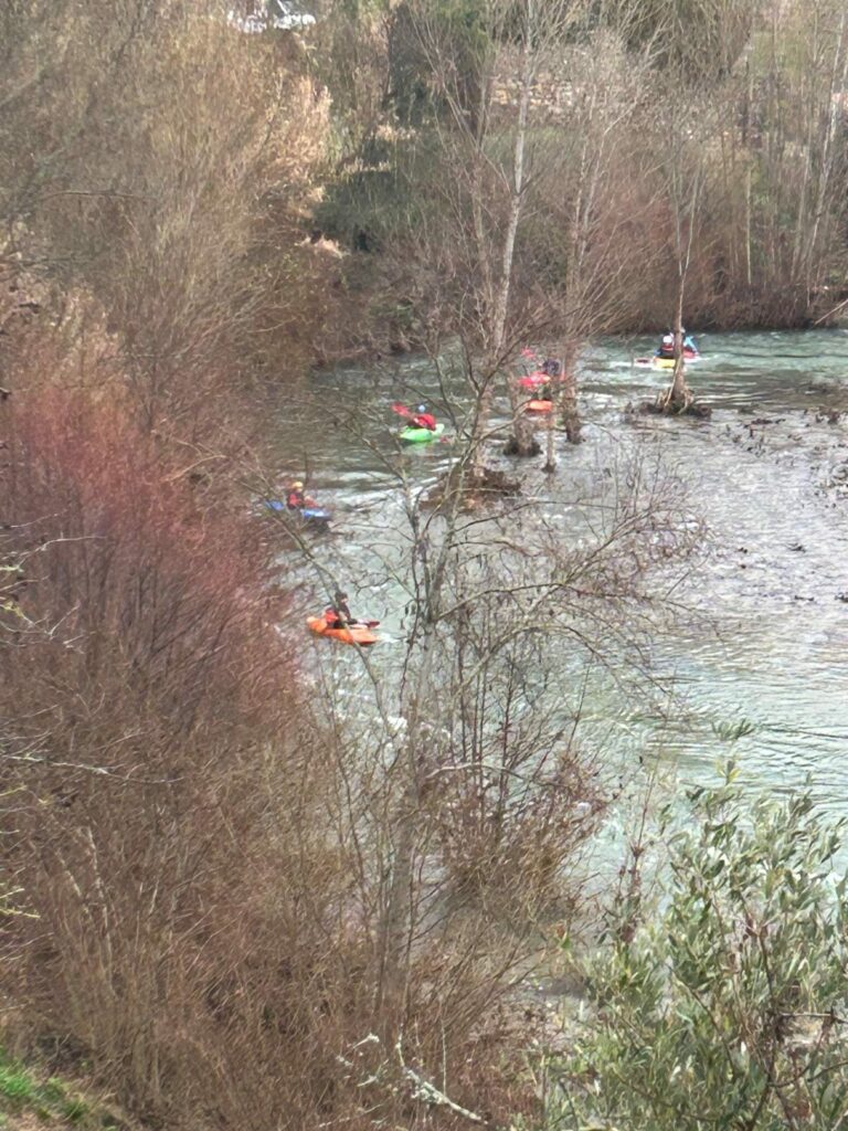 Suite à une analyse de la configuration, seul un courageux kayakiste s’est porté volontaire tandis que les autres montaient une sécu.