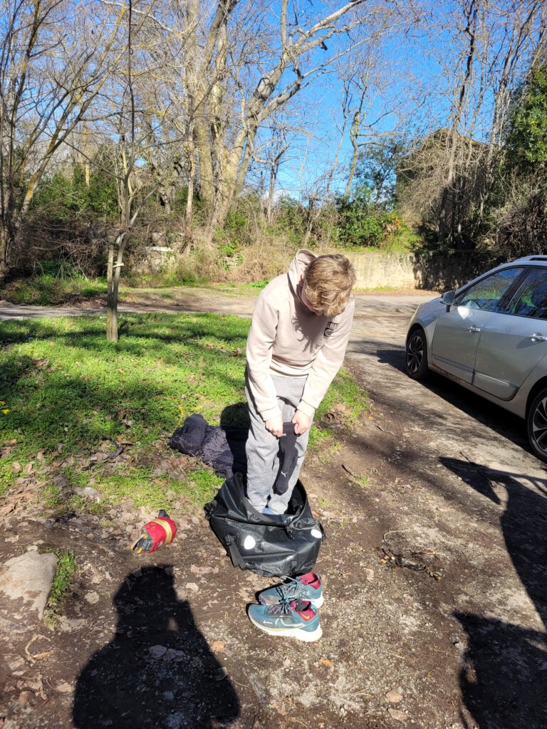 Petite démonstration de Robin sur le thème « Comment se changer « Dans son sac » en 4 etapes «